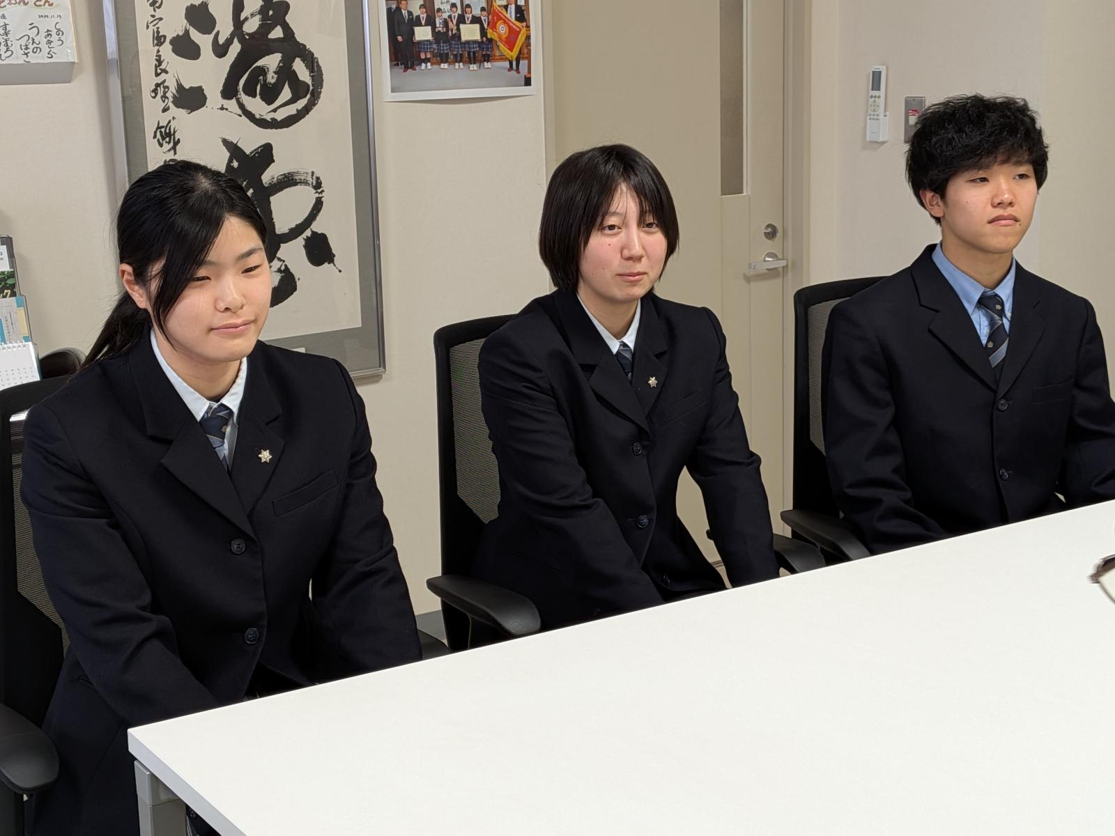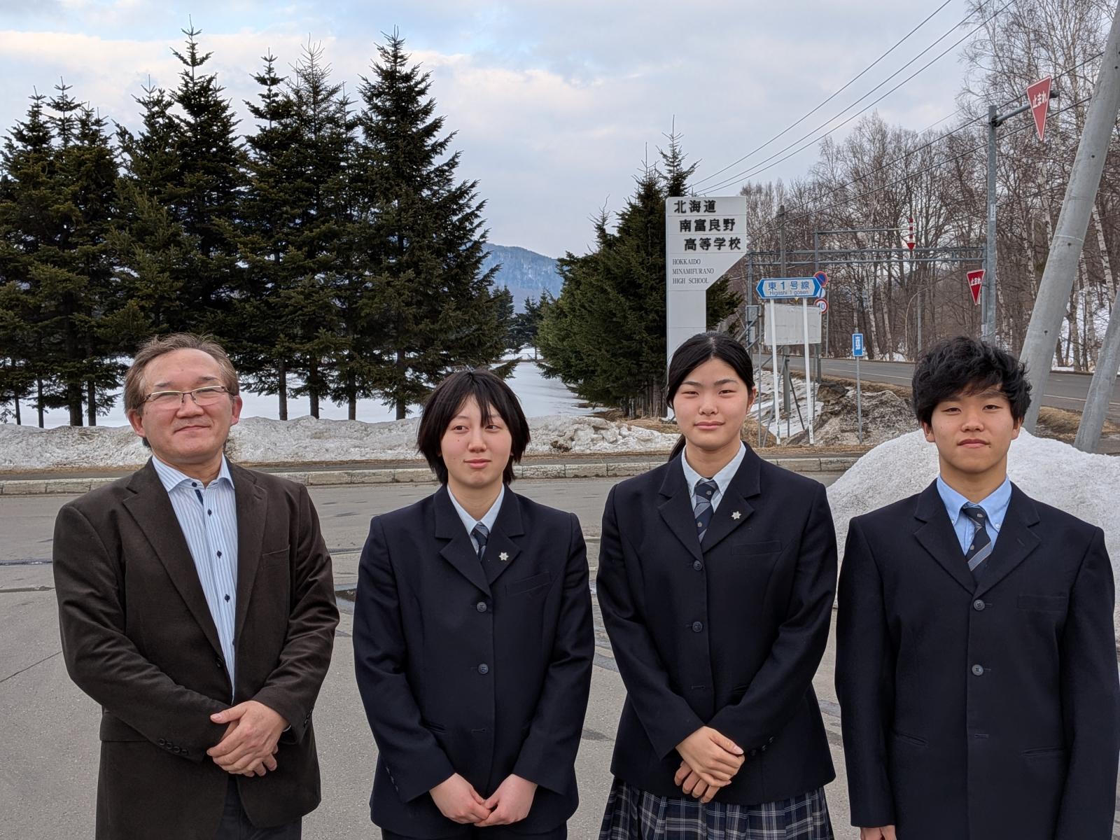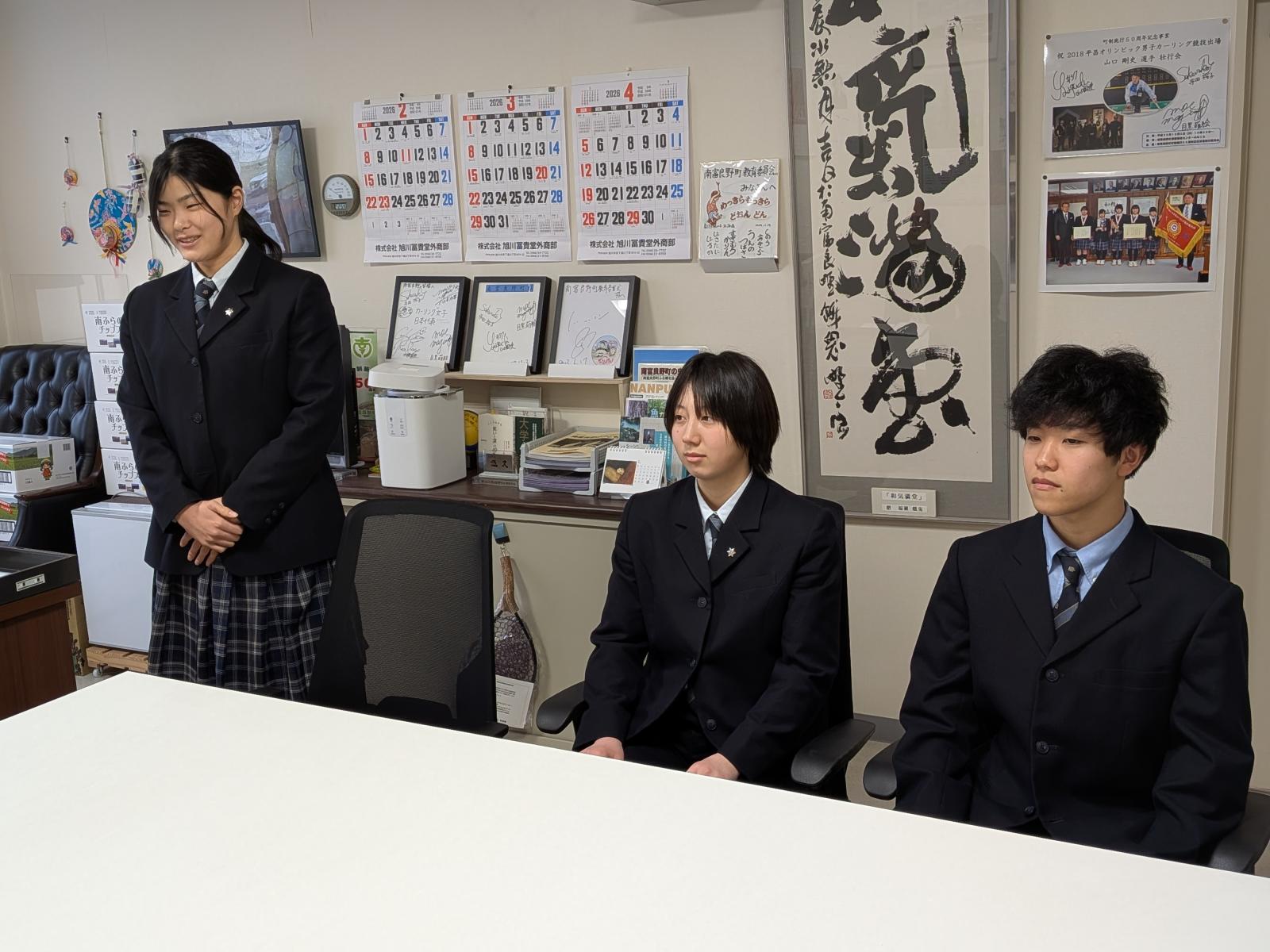 3月16日(月)、本校の国際交流派遣事業に参加する生徒が南富良野町役場を訪問し、南富良野町教育委員会教育長を表敬訪問しました。